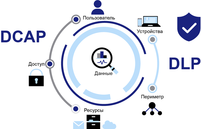 Администратор настраивает политики по конфиденциальности и каналы обмена. Можно полностью блокировать передачу или уведомлять о нарушении. Для отдельных отделов или групп вводится защита «от?ек по внутреннему периметру».
